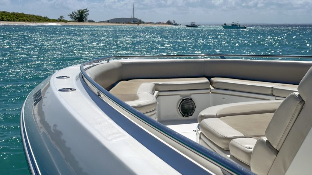 The owner often uses this boat to visit other islands with family and friends! The quality, speed, and weight allow it to slice through the open waters. The dedicated, guest-oriented captain and crew ensure that you receive the owner's treatment, providing an unforgettable day in the Caribbean. While you are anchored at your destination, enjoying the crystal blue waters and the aroma of freshly grilled seasoned chicken and pork skewers, the crew will prepare a spread of other local snacks.